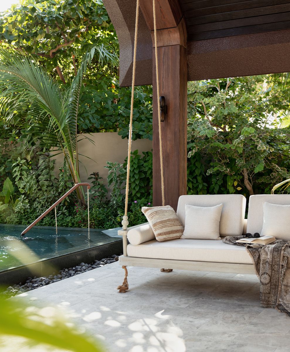 The hotel’s biophilic design takes cues from its tropical surroundings, with curved walls and soft arches crafted from wood and stone with a neutral colour palette of sands, aquamarine blues and coral pinks. From the striking curvilinear Seckin Pirim-designed arrival lounge and the thatched, indoor-outdoor bedrooms to the immersive herbology centre (AKTAR) and sound therapy hall, everything is designed around awakening.